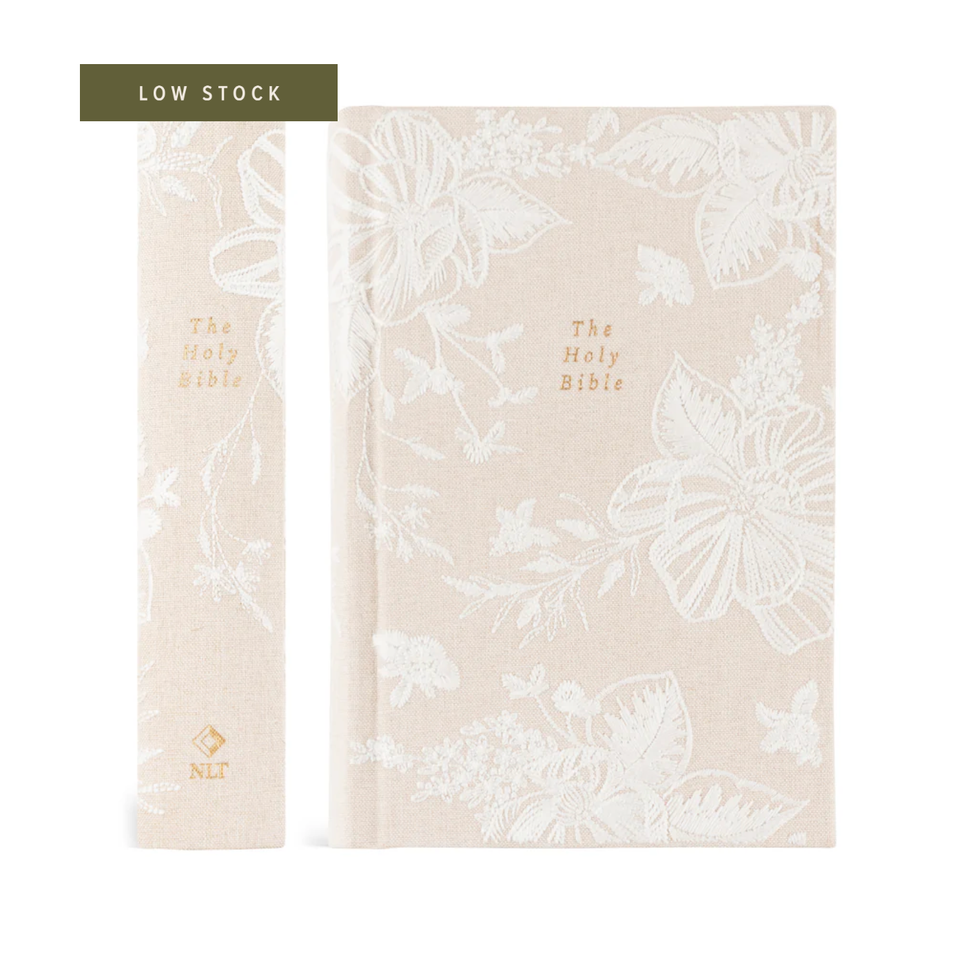 This NLT Compact Bible features our Casablanca design. Inspired by the town of Casablanca, Morocco, this beautiful Bible has a gorgeous, lacey, embroidered floral design, reminiscent of the rich heritage of this town’s textile port. Outlines of delicate, white embroidered magnolias cover this Bible, giving it an elegant and elevated look while gold-gilded pages give this Bible an extra touch of beauty. The white embroidery reminds us that the Lord has made us beautifully pure in his sight, while the back cover includes a gold-foiled verse, Hebrews 4:16: “Come boldly to the throne of grace.” This verse encourages us that what waits for us at the feet of Jesus is overwhelming grace. His love for us is unchanging, consistently extending us the freedom to lay our entire hearts at his feet and be met with his unconditional affection. We pray that this Bible would usher in God’s grace and that you would experience a deeper understanding of the cross and his love for you.